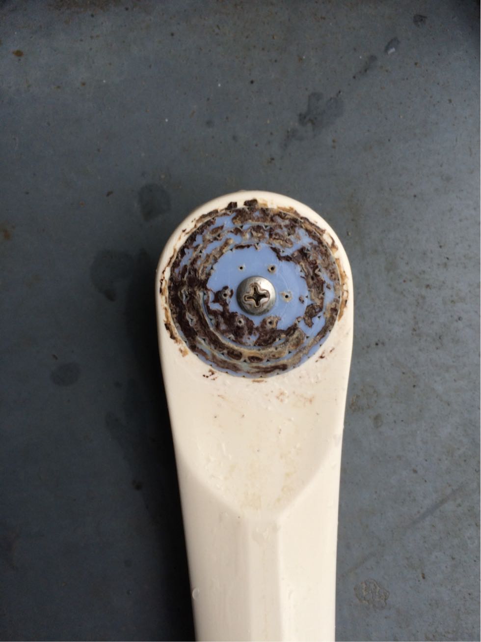 石化した汚れがこびり付いて、スポンジでコスってもタワシでコスってもびくともしないですね!
